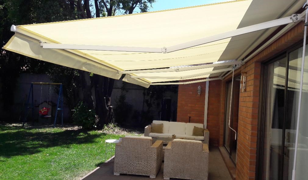 toldo cuando está plegado, protegiendo el rollo de tela de las condiciones